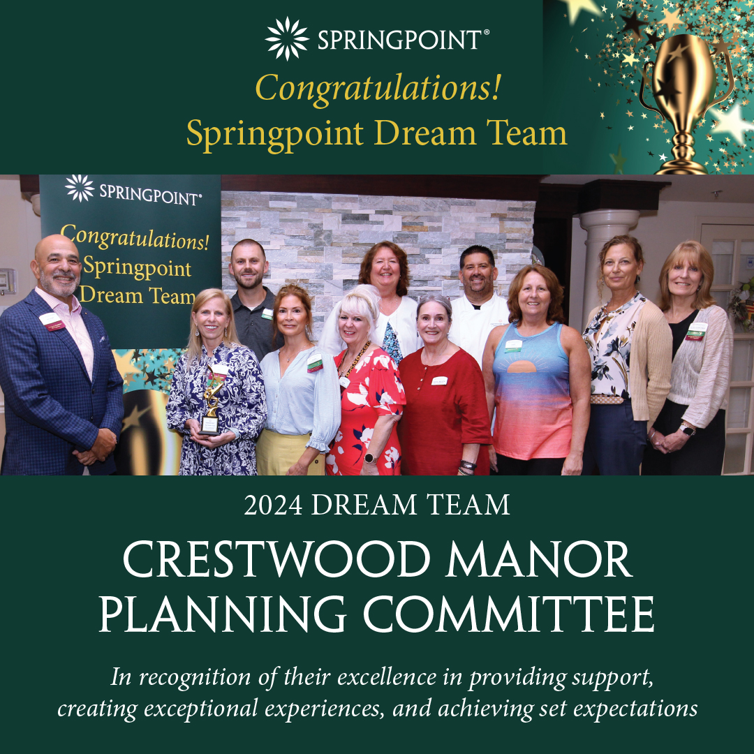 Congratulations to Crestwood Manor on receiving the 2024 Dream Team Award. The Dream Team Award is one of several Springpoint...