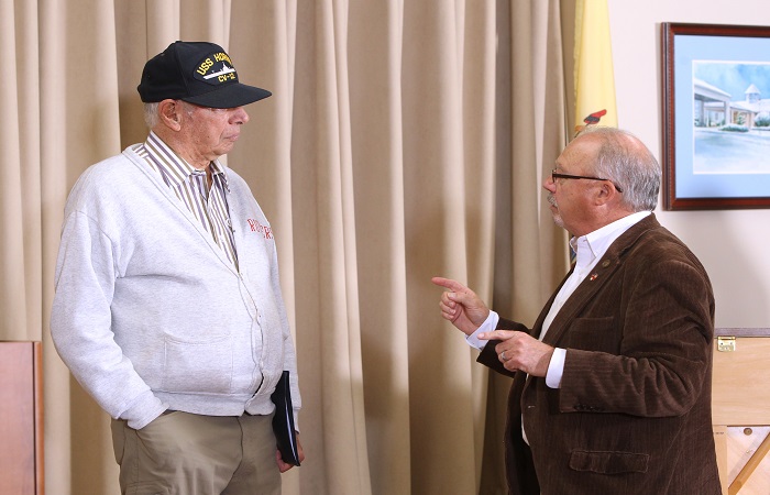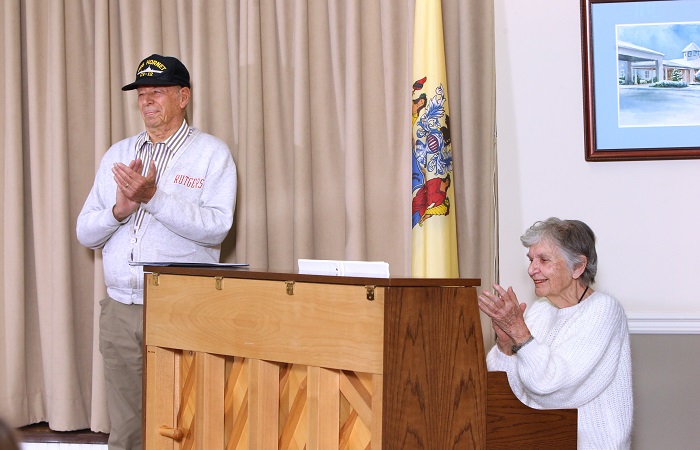 The event drew over 40 attendees, several embellished in military flair including hats, jackets, medals, and badges. Veterans (including family and friend representatives) were asked to stand for applause when their military branch was called–this included the U.S. Army, U.S. Navy, U.S. Airforce, U.S. Coast Guard, and U.S. Marine Corps.
